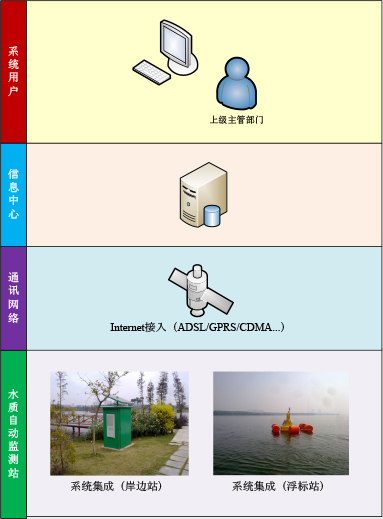 完整的水質(zhì)在線監(jiān)測集成系統(tǒng)主要由三部分組成: